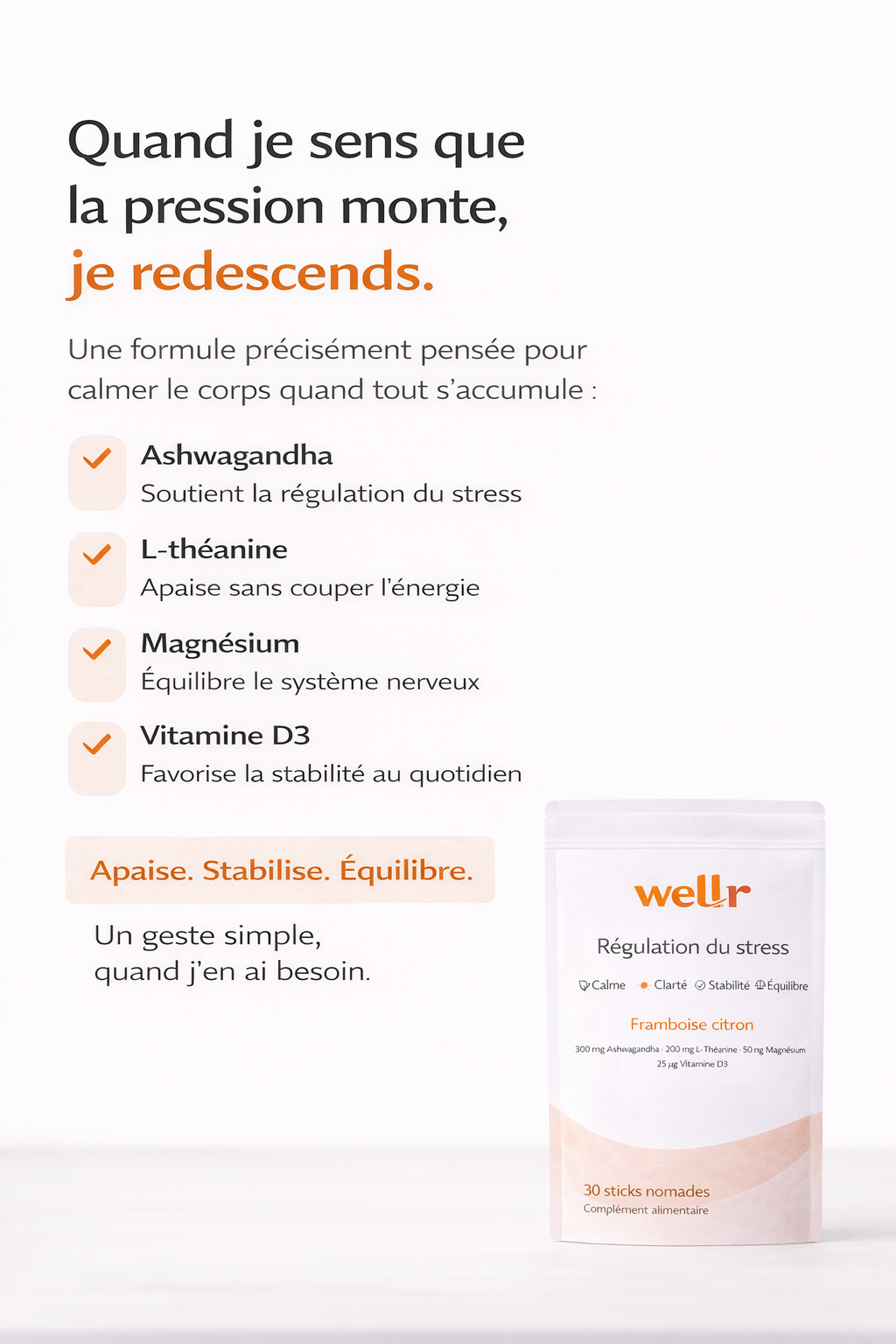 Je prends Wellr chaque matin et j’ai clairement ressenti une différence sur mon niveau de stress. Moins de tensions, esprit plus clair. Facile à intégrer dans ma routine.